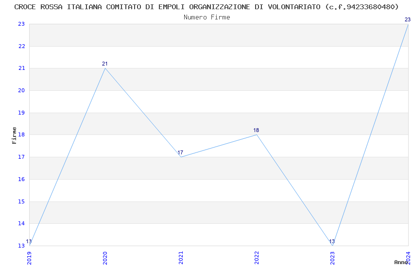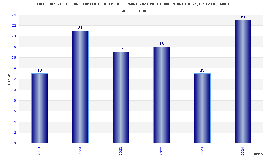 | Anno | Firme | Importi | Media | Naz. | Reg. | Prov. | Comu. |