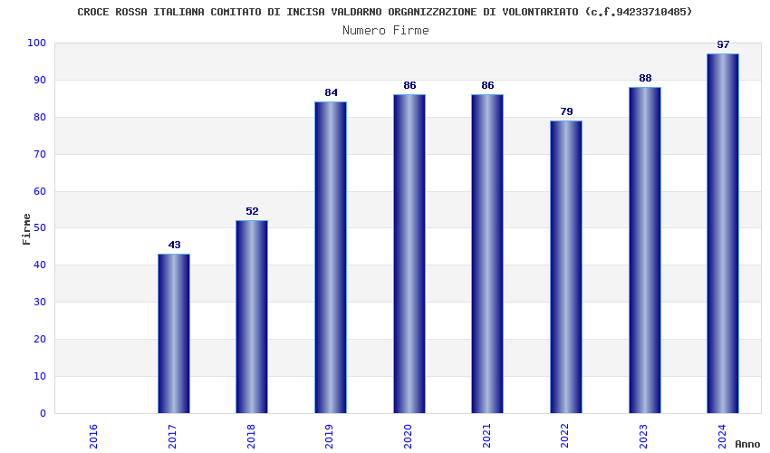 | Anno | Firme | Importi | Media | Naz. | Reg. | Prov. | Comu. |