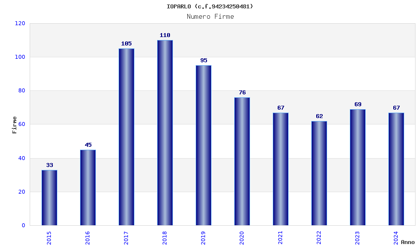 | Anno | Firme | Importi | Media | Naz. | Reg. | Prov. | Comu. |