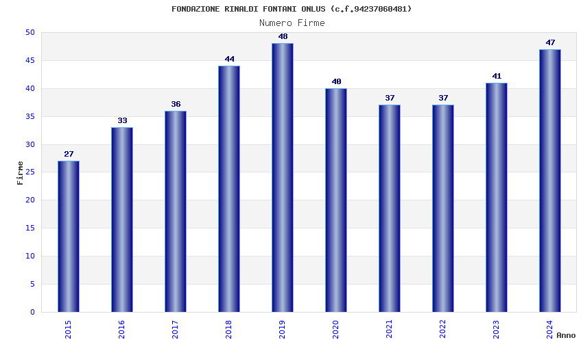 | Anno | Firme | Importi | Media | Naz. | Reg. | Prov. | Comu. |