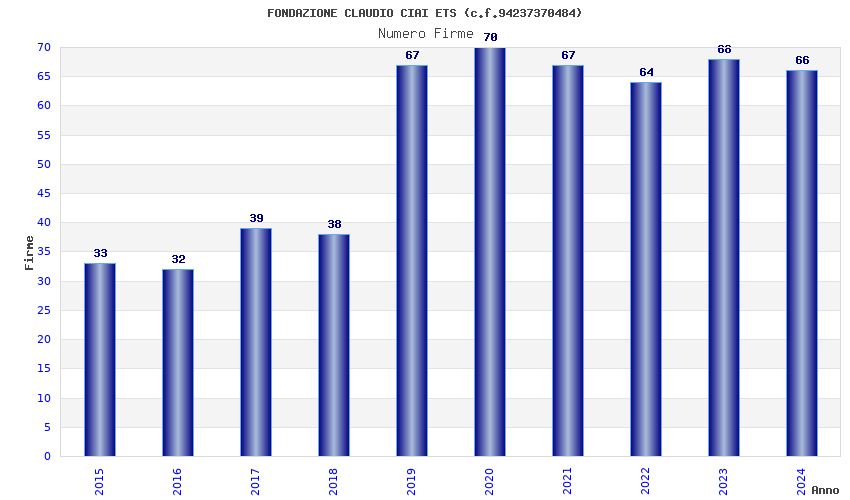 | Anno | Firme | Importi | Media | Naz. | Reg. | Prov. | Comu. |