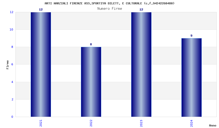 | Anno | Firme | Importi | Media | Naz. | Reg. | Prov. | Comu. |