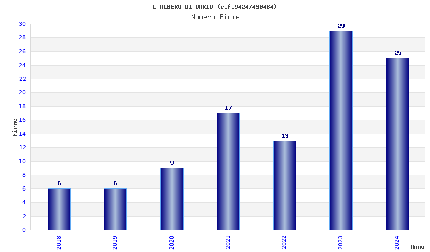 | Anno | Firme | Importi | Media | Naz. | Reg. | Prov. | Comu. |