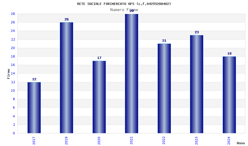 | Anno | Firme | Importi | Media | Naz. | Reg. | Prov. | Comu. |