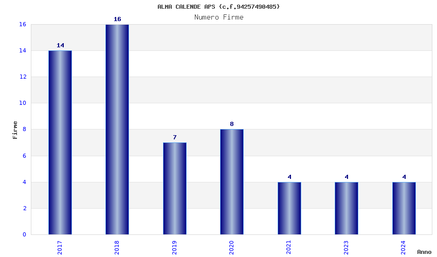 | Anno | Firme | Importi | Media | Naz. | Reg. | Prov. | Comu. |