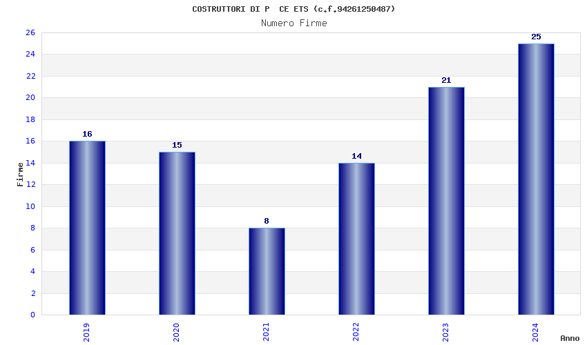| Anno | Firme | Importi | Media | Naz. | Reg. | Prov. | Comu. |