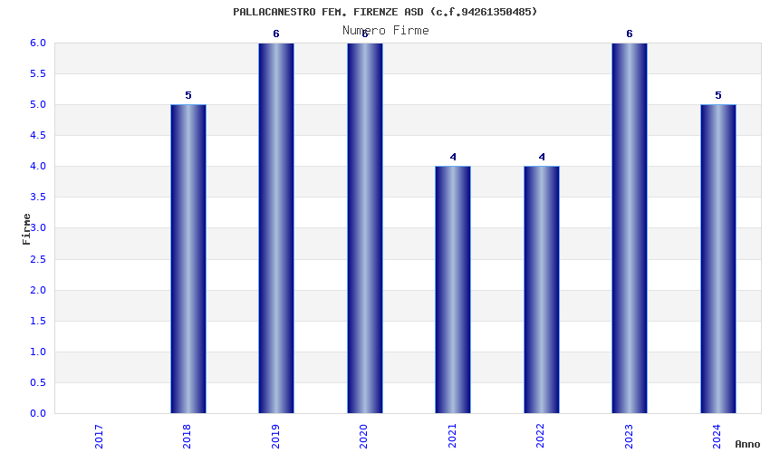 | Anno | Firme | Importi | Media | Naz. | Reg. | Prov. | Comu. |