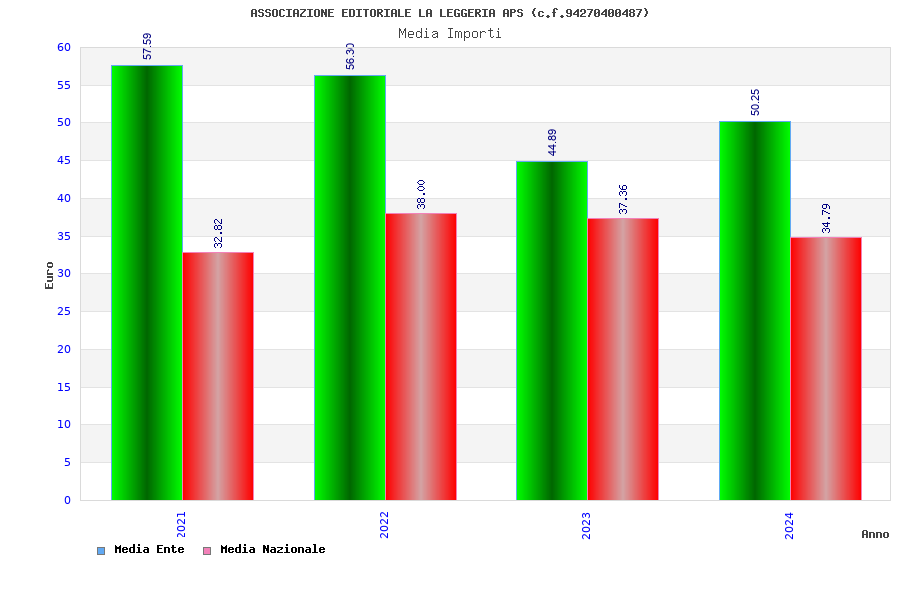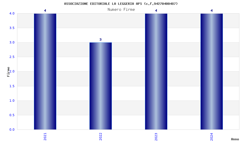 | Anno | Firme | Importi | Media | Naz. | Reg. | Prov. | Comu. |