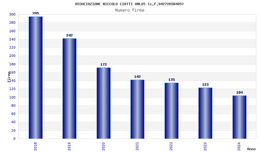 | Anno | Firme | Importi | Media | Naz. | Reg. | Prov. | Comu. |