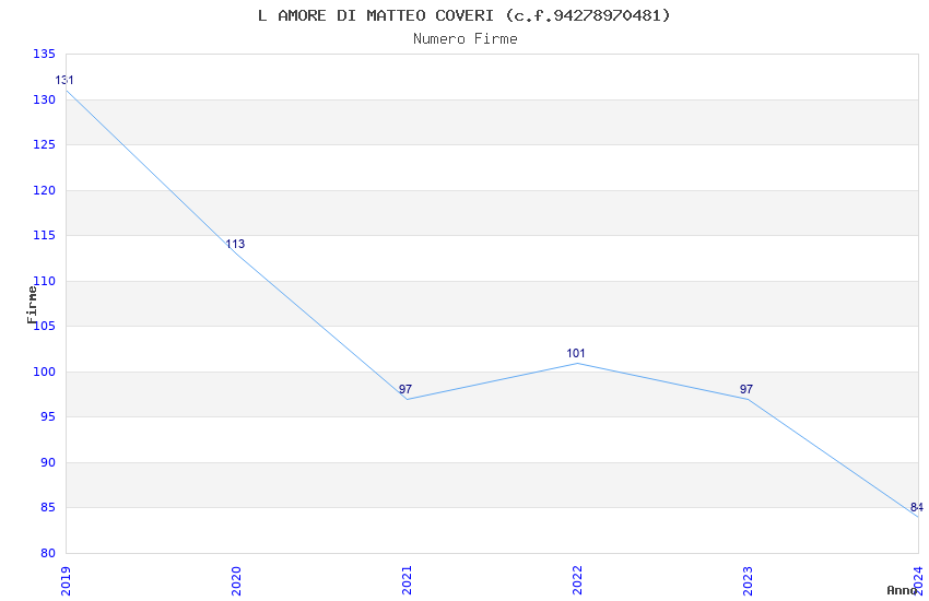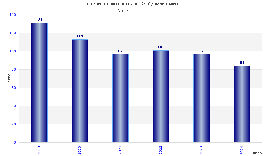 | Anno | Firme | Importi | Media | Naz. | Reg. | Prov. | Comu. |