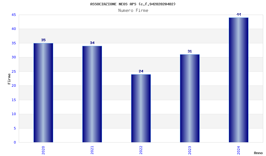 | Anno | Firme | Importi | Media | Naz. | Reg. | Prov. | Comu. |