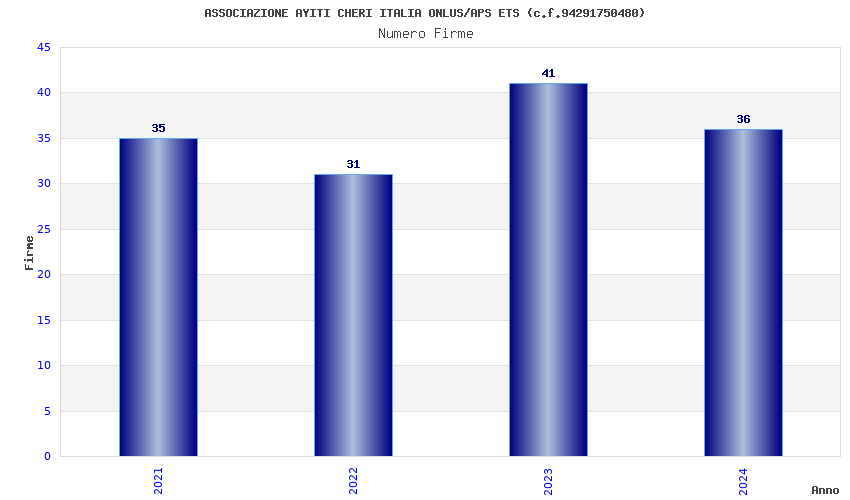 | Anno | Firme | Importi | Media | Naz. | Reg. | Prov. | Comu. |