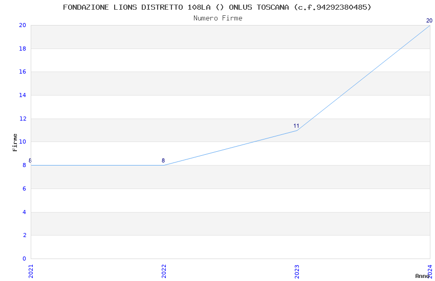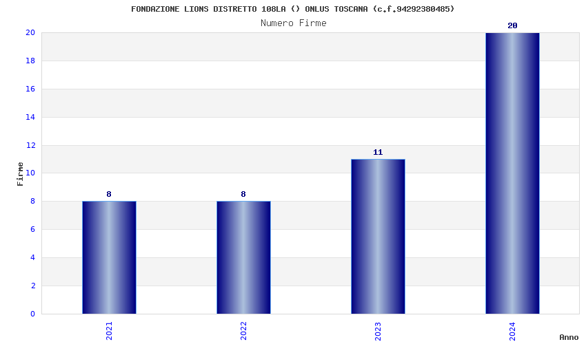 | Anno | Firme | Importi | Media | Naz. | Reg. | Prov. | Comu. |
