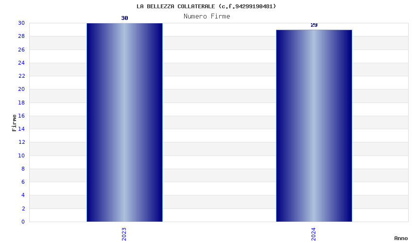 | Anno | Firme | Importi | Media | Naz. | Reg. | Prov. | Comu. |