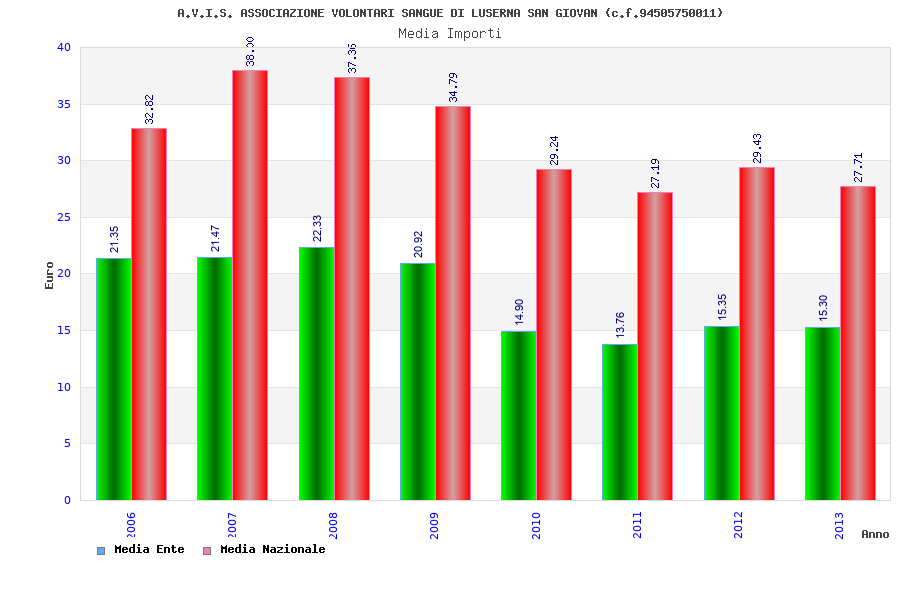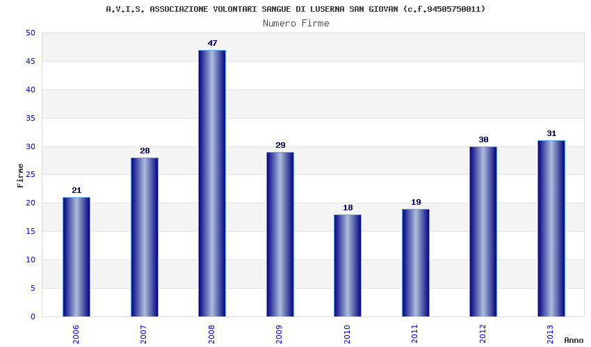 | Anno | Firme | Importi | Media | Naz. | Reg. | Prov. | Comu. |