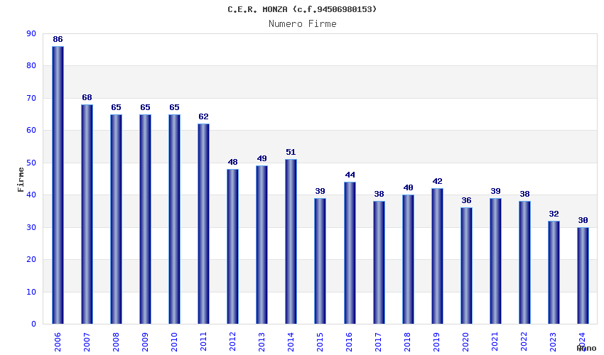 | Anno | Firme | Importi | Media | Naz. | Reg. | Prov. | Comu. |