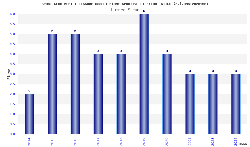 | Anno | Firme | Importi | Media | Naz. | Reg. | Prov. | Comu. |