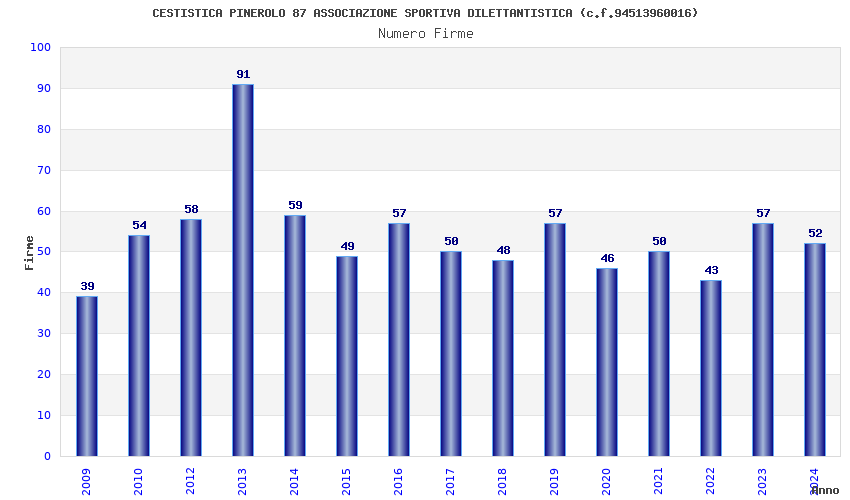 | 2013 | 91 | 3.579,01 | 39,33 | 11.853 | 877 | 474 | 11 |