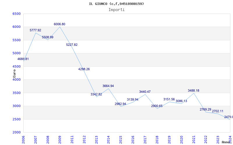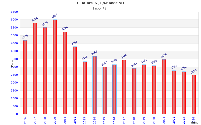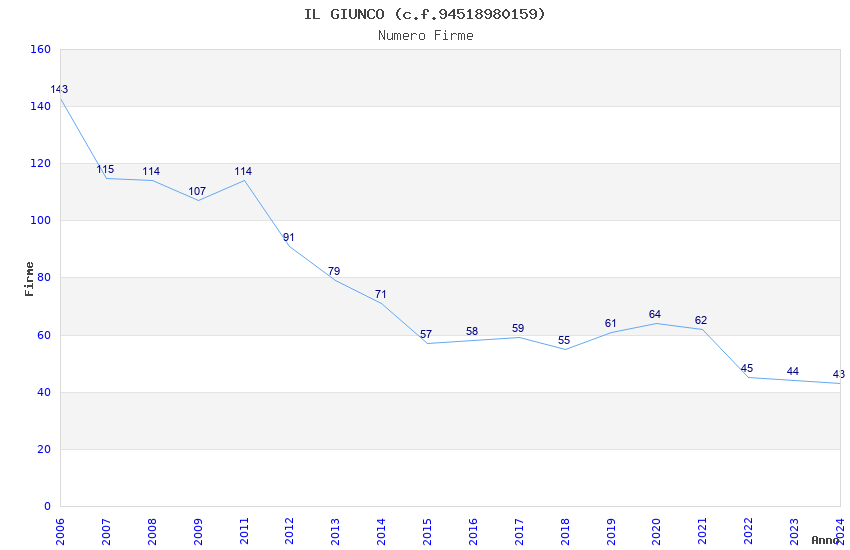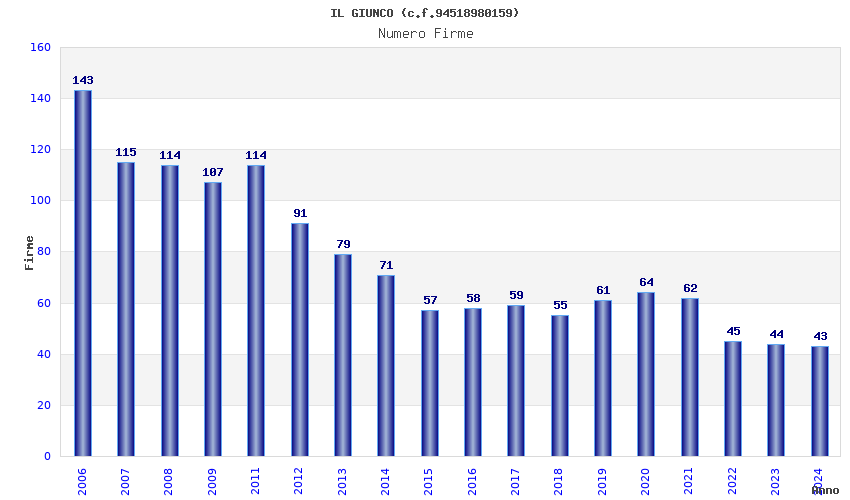 | 2024 | 43 | 2.479,89 | 57,67 | 20.384 | 4.349 | 356 | 10 |