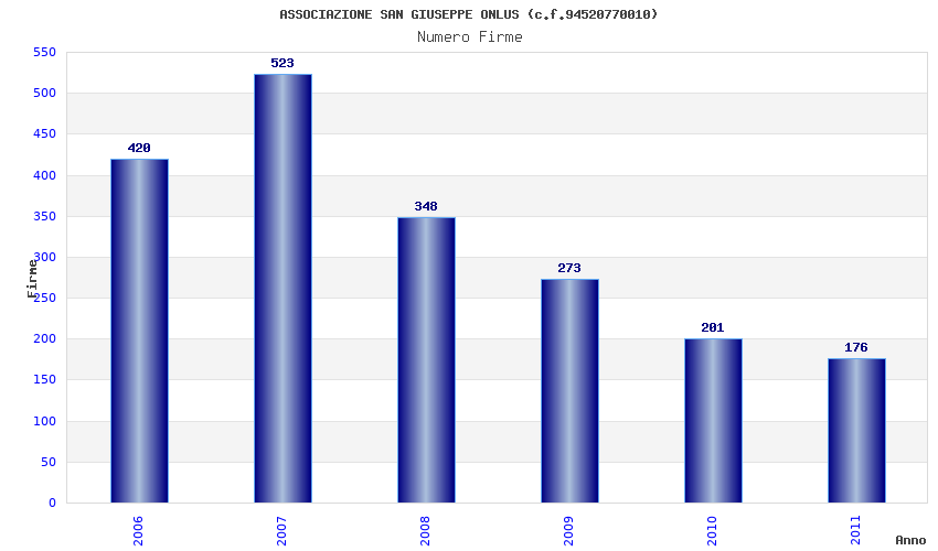 | Anno | Firme | Importi | Media | Naz. | Reg. | Prov. | Comu. |