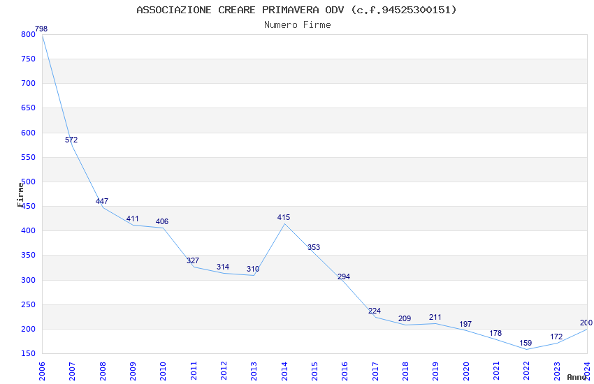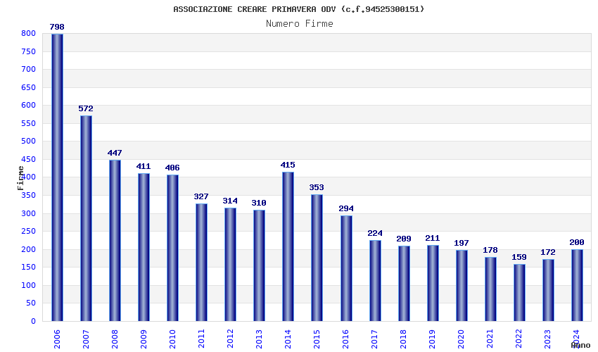 | Anno | Firme | Importi | Media | Naz. | Reg. | Prov. | Comu. |