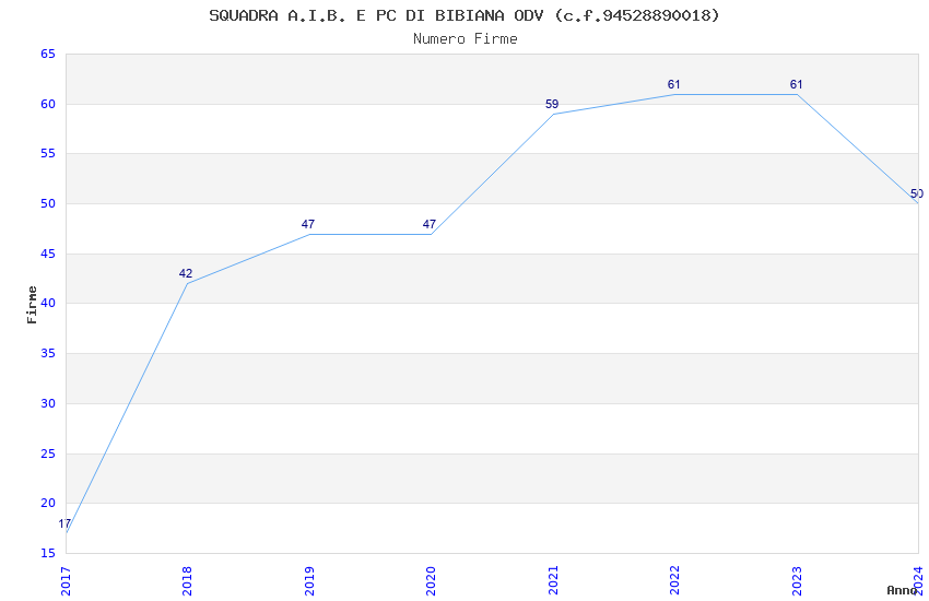 | 2023 | 61 | 1.718,00 | 28,16 | 26.315 | 2.022 | 1.044 | 2 |