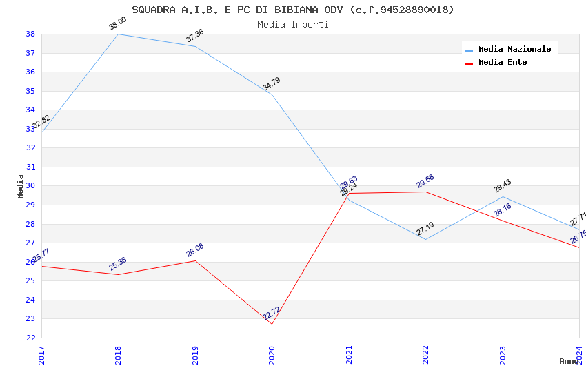 | Anno | Firme | Importi | Media | Naz. | Reg. | Prov. | Comu. |