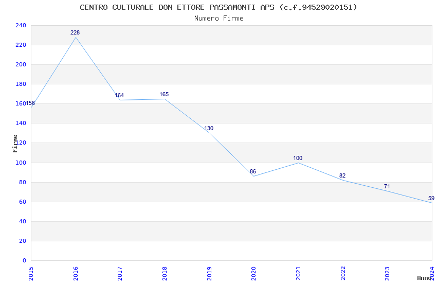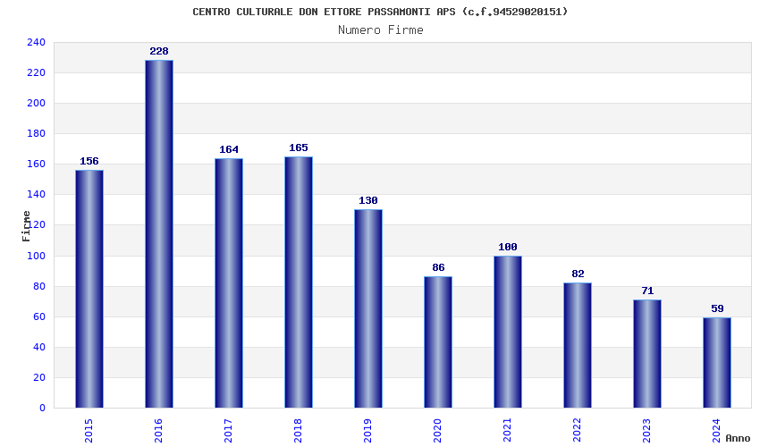| Anno | Firme | Importi | Media | Naz. | Reg. | Prov. | Comu. |