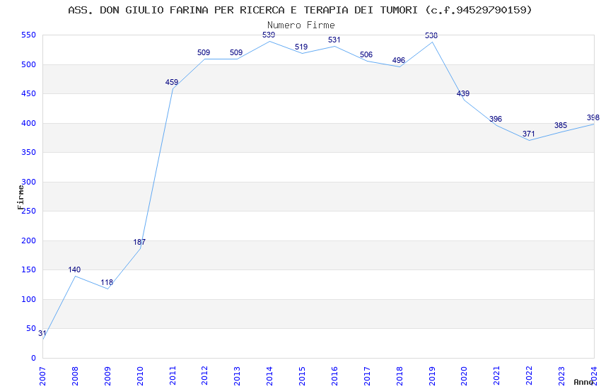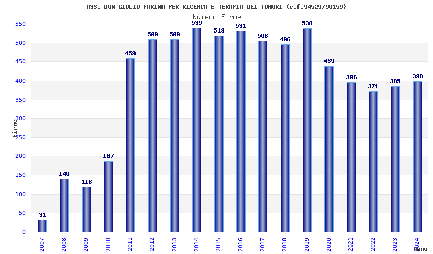 | Anno | Firme | Importi | Media | Naz. | Reg. | Prov. | Comu. |