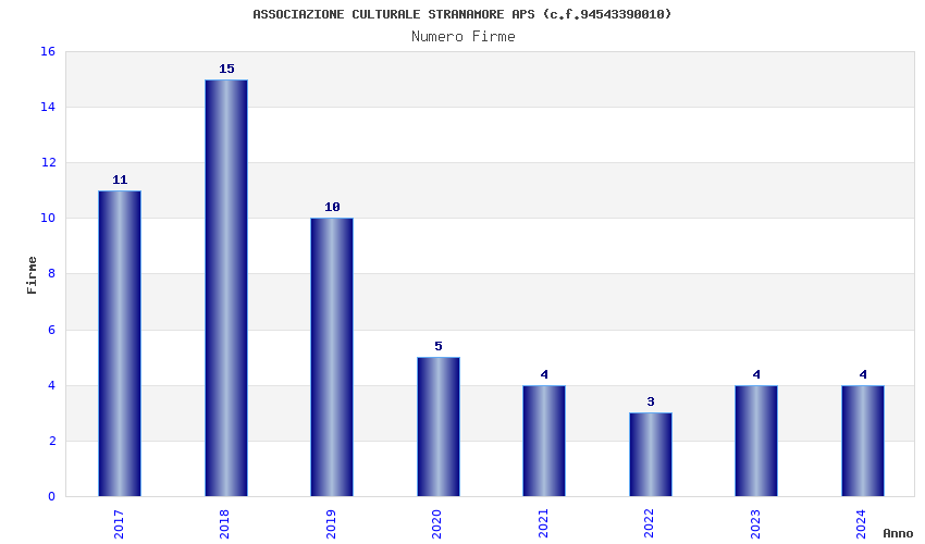 | Anno | Firme | Importi | Media | Naz. | Reg. | Prov. | Comu. |