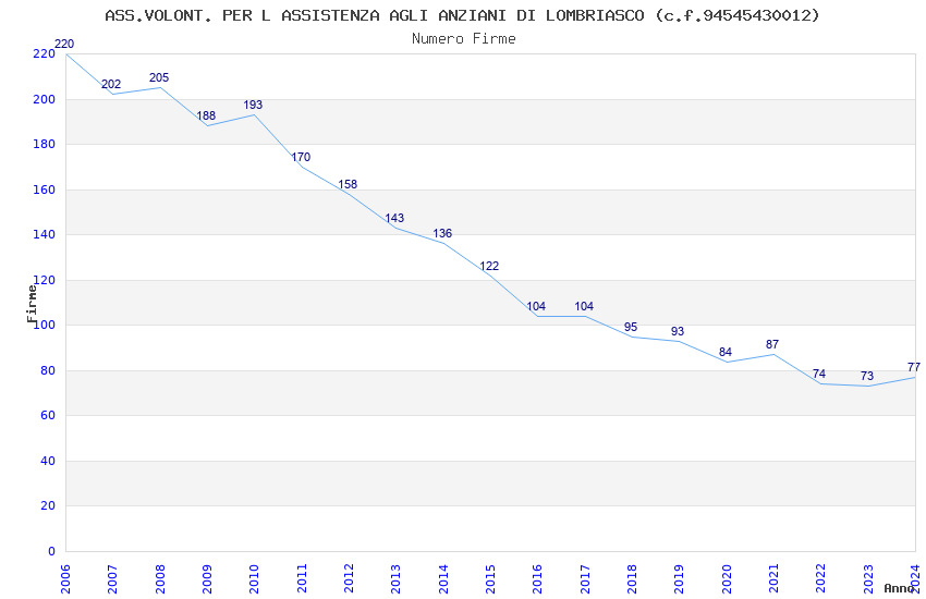 | 2024 | 77 | 2.535,65 | 32,93 | 20.009 | 1.436 | 764 | 1 |