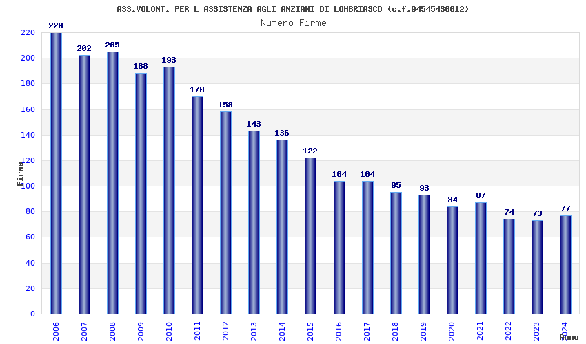 | 2006 | 220 | 5.051,58 | 22,96 | 8.213 | 712 | 372 | 1 |