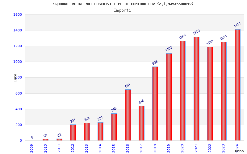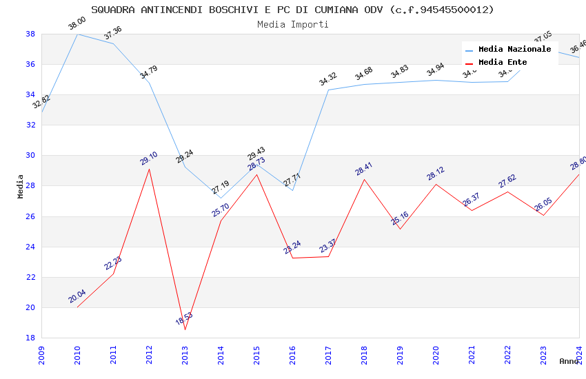 | Anno | Firme | Importi | Media | Naz. | Reg. | Prov. | Comu. |