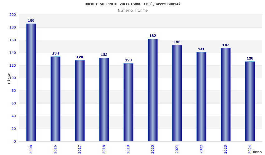 | Anno | Firme | Importi | Media | Naz. | Reg. | Prov. | Comu. |