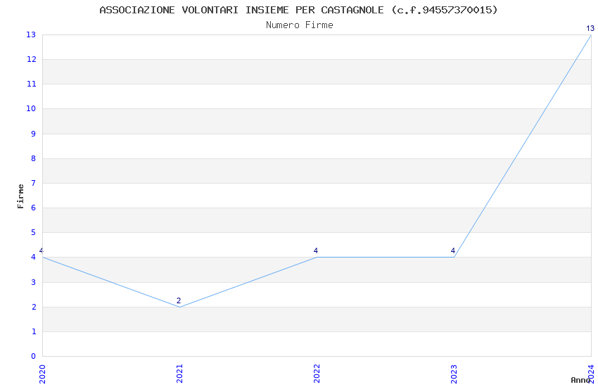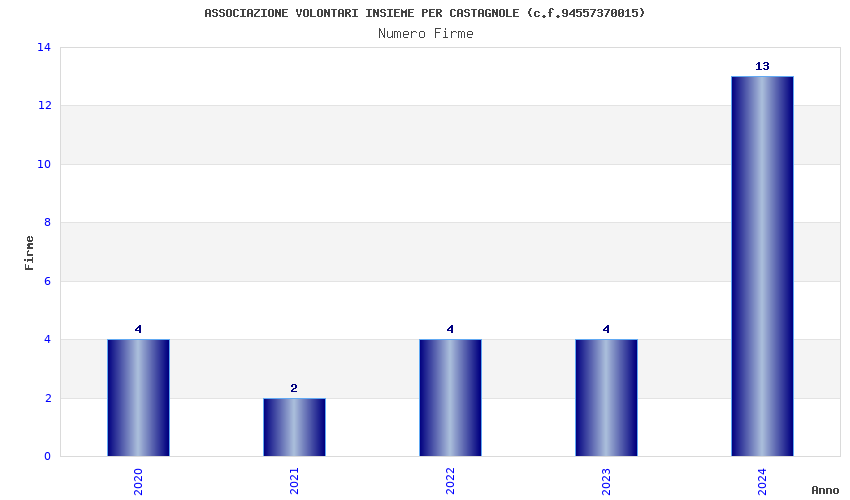 | Anno | Firme | Importi | Media | Naz. | Reg. | Prov. | Comu. |