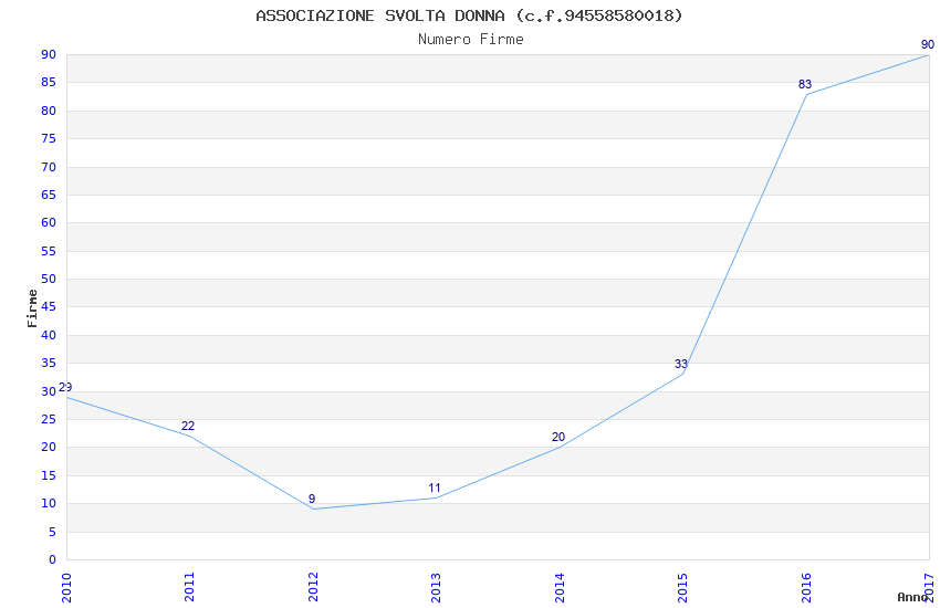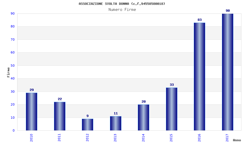 | Anno | Firme | Importi | Media | Naz. | Reg. | Prov. | Comu. |