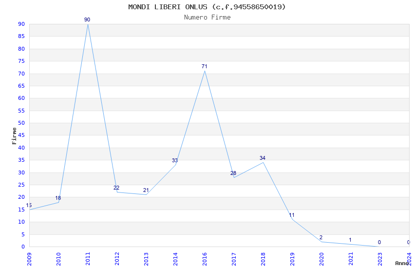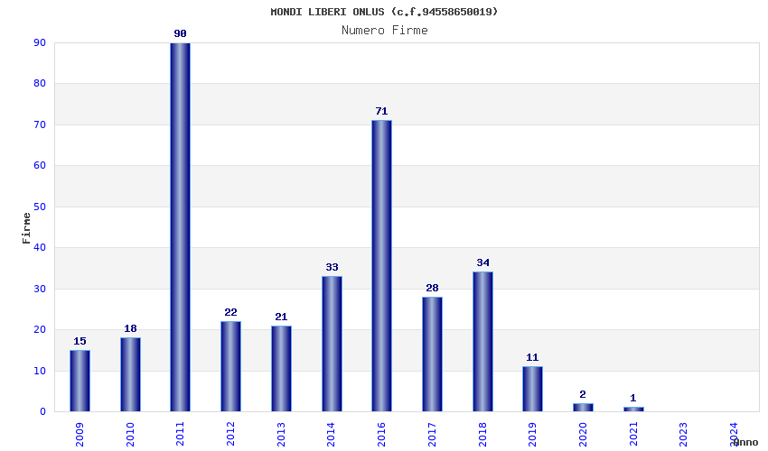 | Anno | Firme | Importi | Media | Naz. | Reg. | Prov. | Comu. |