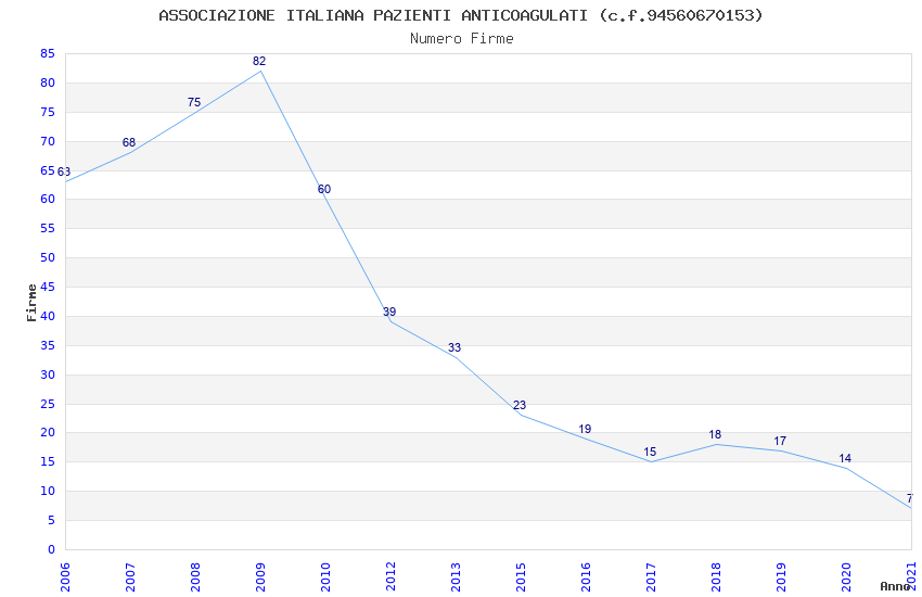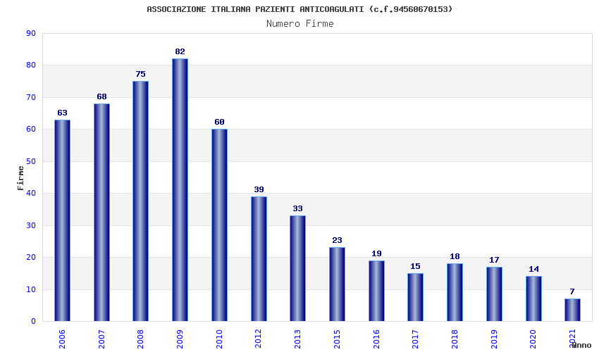 | Anno | Firme | Importi | Media | Naz. | Reg. | Prov. | Comu. |