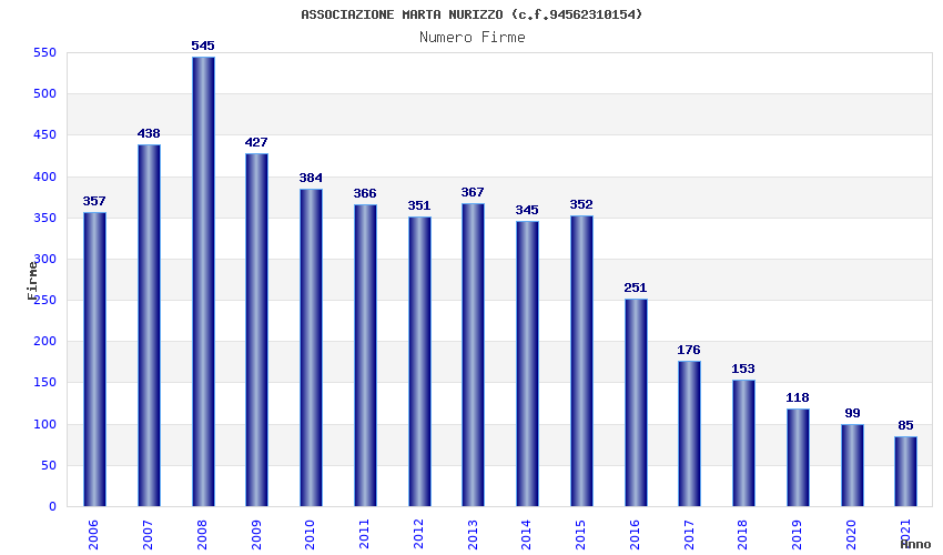 | Anno | Firme | Importi | Media | Naz. | Reg. | Prov. | Comu. |