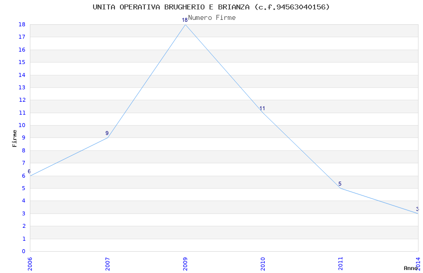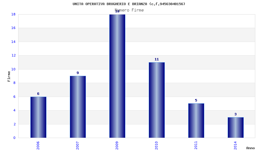 | Anno | Firme | Importi | Media | Naz. | Reg. | Prov. | Comu. |
