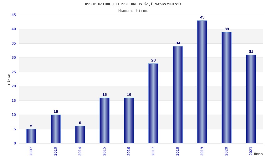 | Anno | Firme | Importi | Media | Naz. | Reg. | Prov. | Comu. |