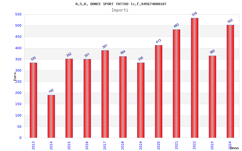 | Anno | Firme | Importi | Media | Naz. | Reg. | Prov. | Comu. |
