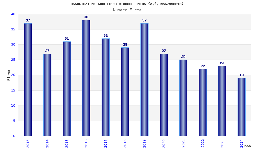| Anno | Firme | Importi | Media | Naz. | Reg. | Prov. | Comu. |
