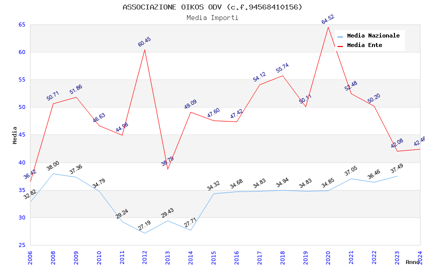 | Anno | Firme | Importi | Media | Naz. | Reg. | Prov. | Comu. |