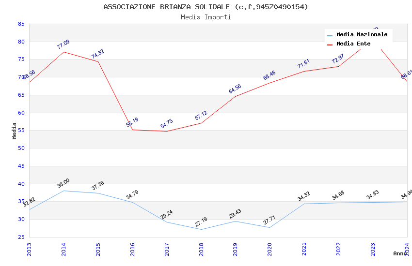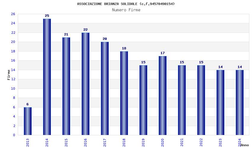 | Anno | Firme | Importi | Media | Naz. | Reg. | Prov. | Comu. |