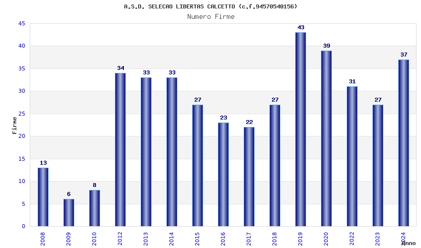 | 2019 | 43 | 2.193,59 | 51,01 | 22.522 | 5.066 | 1.768 | 23 |