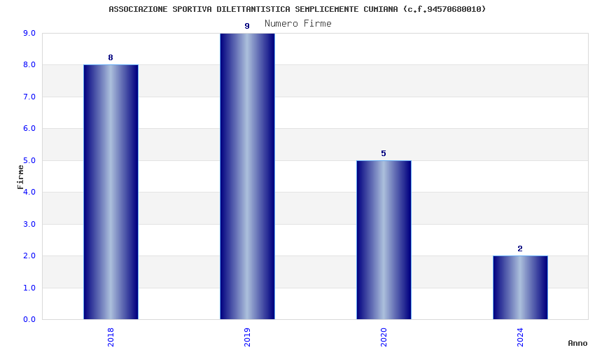 | Anno | Firme | Importi | Media | Naz. | Reg. | Prov. | Comu. |