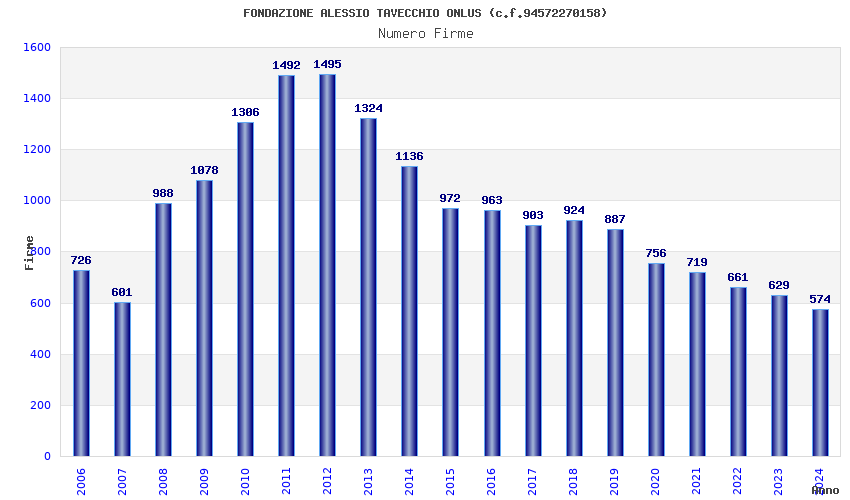 | Anno | Firme | Importi | Media | Naz. | Reg. | Prov. | Comu. |