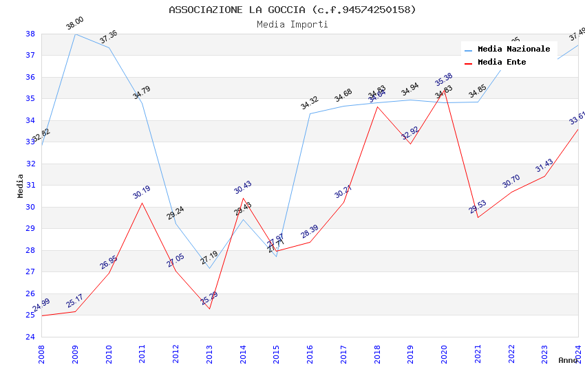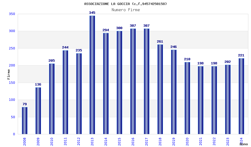 | Anno | Firme | Importi | Media | Naz. | Reg. | Prov. | Comu. |