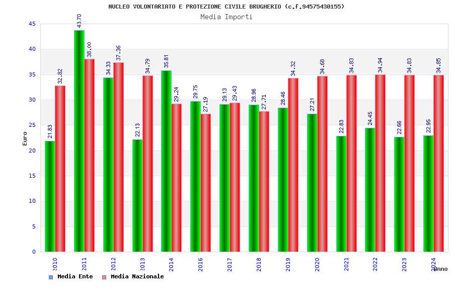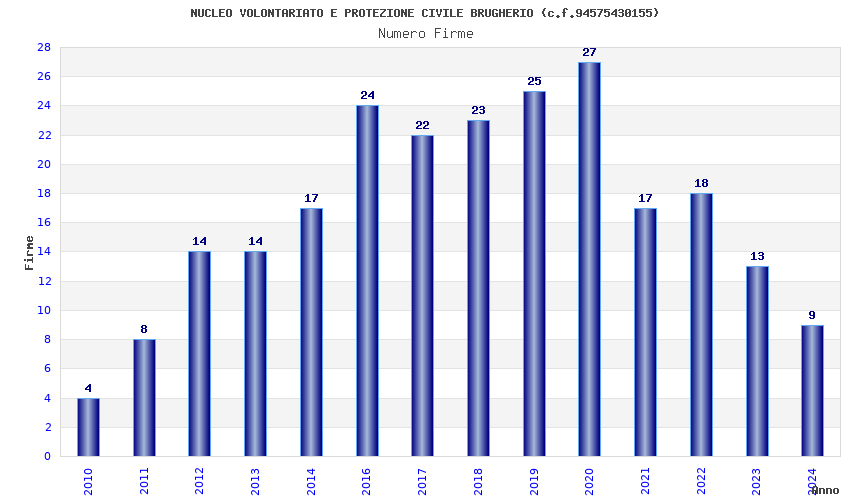 | Anno | Firme | Importi | Media | Naz. | Reg. | Prov. | Comu. |